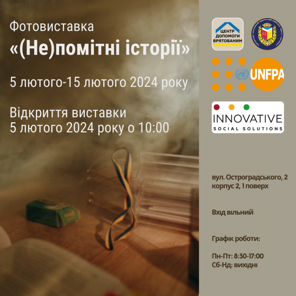 Саме тому у 10 містах України, де функціонують стаціонарні Центри допомоги врятованим, проходить фотовиставка (не)помітних історій. На фото будуть зображені речі людей, постраждалих під час війни, які отримали допомогу у ">Центрах допомоги врятованим. Речі сфотографовані в тумані, щоб проілюструвати, що складно розгледіти те, що люди пережили під час війни.