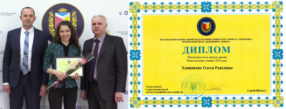 Керівництво університету всіляко підтримує молодих науковців. Згідно Положення про премію ради молодих учених за видатні досягнення у галузі природничих, технічних та гуманітарних наук, які сприяють подальшому розвитку науки, суспільному прогресу і утверджують високий авторитет вітчизняної науки, комітет премії Ради молодих учених Полтавського національного педагогічного університету імені В. Г. Короленка ухвалив рішення про присудження Премії Ради молодих вчених 2020 р. кандидатці біологічних наук, асистентці кафедри ботаніки, екології та методики навчання біології Олесі Ханнановій.
