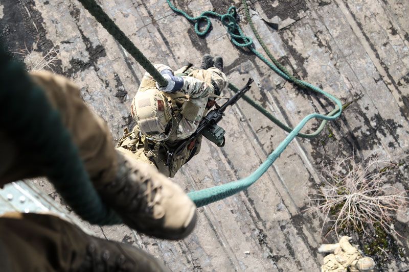 За допомогою комплекту з`ємного бортового обладнання “Канат-1” (Fast-rope), воїни #ССО разом з екіпажом гелікоптера вдосконалювали навички швидкої висадки та евакуації.
